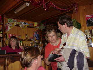 Luba beim Wirt für den Abend Bier und Wein zu besorgen, denn es ist