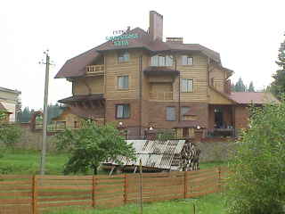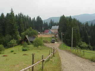 oberhalb des Hotels. Das Dorf Slavske, zu dem das Hotel gehört, hat